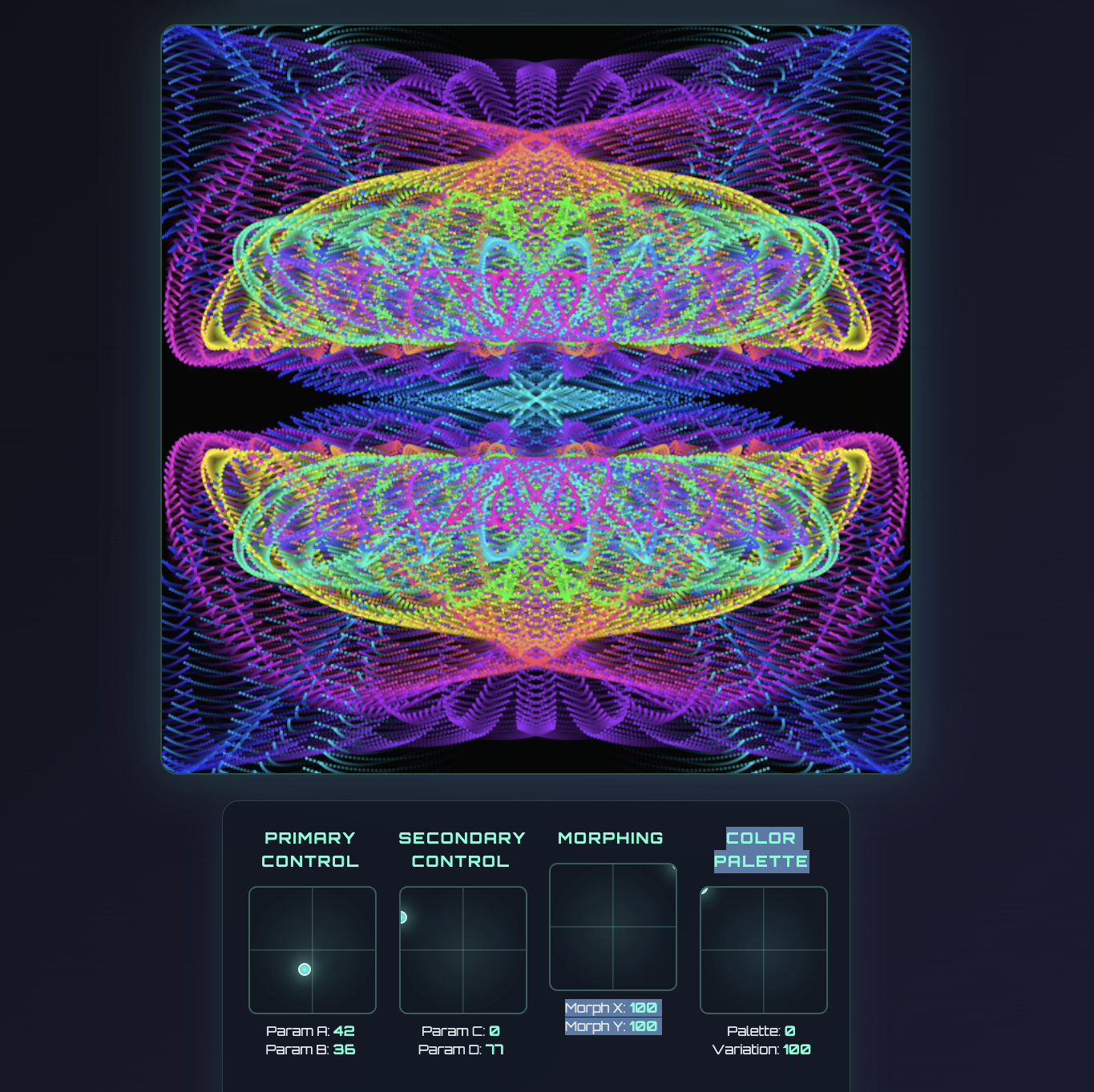 Wave Harmony Space develops neuromodulation applications and mathematical visualisations for meditation and consciousness expansion. The work translates decades of sonic expertise into visual form – exploring wave interference, sacred geometry, and harmonic resonance through generative art and interactive tools.