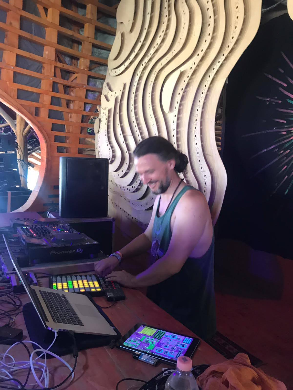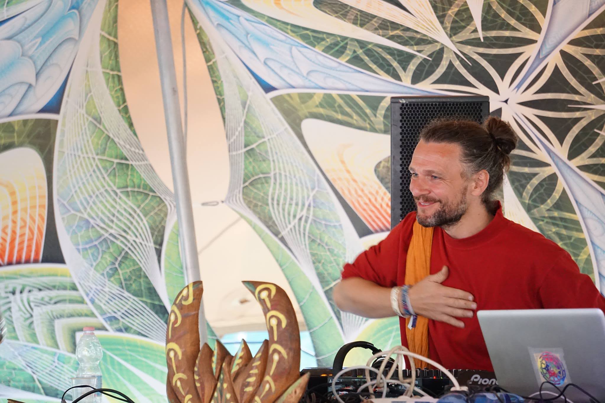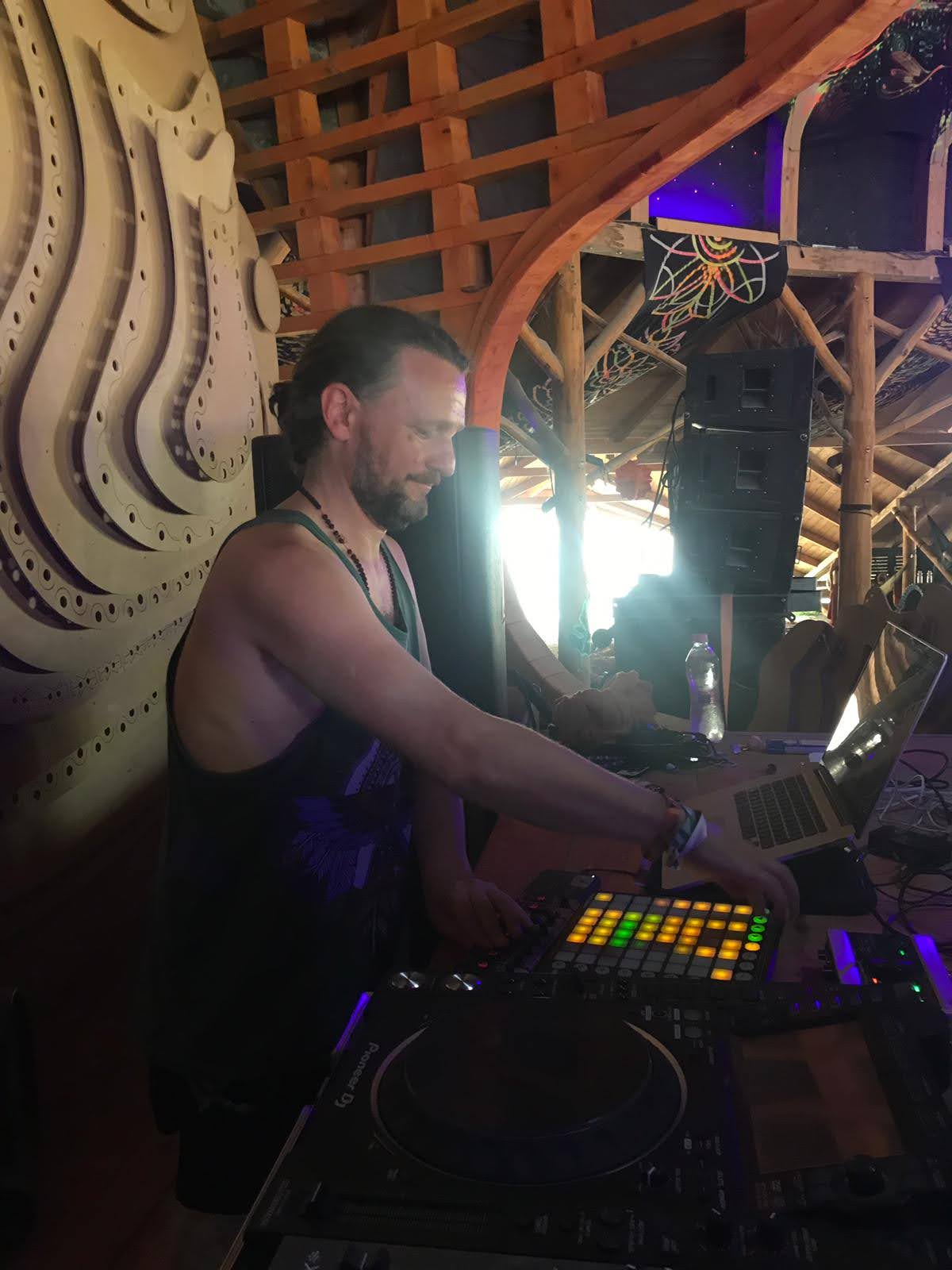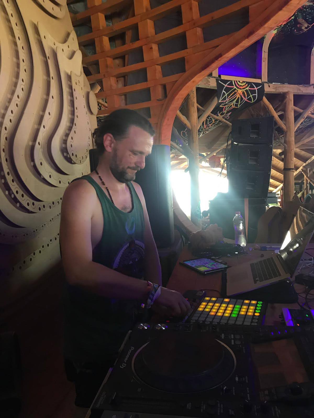 Electronic music producer active in the UK scene since 1995, DJing and organising legendary Goa Trance parties in London. From 1995-2000, performed internationally as Darren Dragonfly (label manager for Dragonfly Records) in Japan, Greece, and Denmark. As a producer with projects including Noodreem, Ashirvad, Spectralite and Sangita Soundsystem he has performanced across Europe’s festivals from 2006-2020 incl. Boom, Ozora, Sonica and beyond. Eight years in India recording and performing with traditional folk and classical musicians shaped a unique sound bridging East and West.